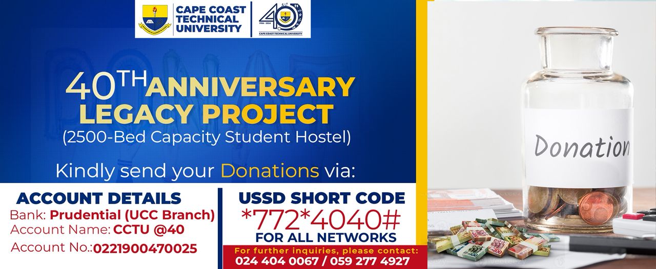 Cape Coast Technical University is a unique University that is committed to training of highly skilled human resource in Engineering, Applied Sciences and Technology, Applied Arts and Business in close collaboration with the industries and commerce. Cape Coast Technical University (CCTU), formerly Cape Coast Polytechnic was established in 1984 as a second cycle institution.